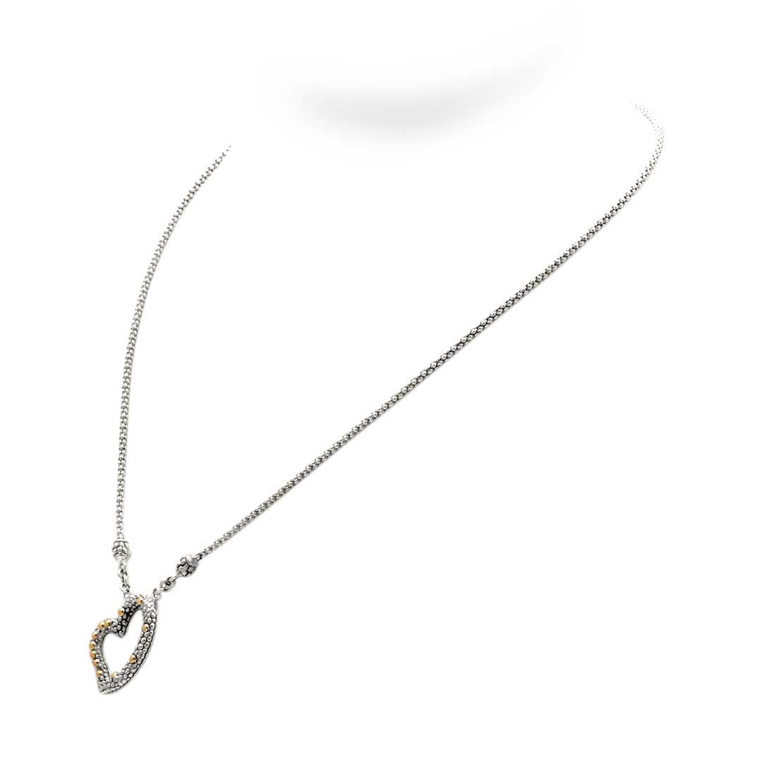 Gold & Silver heart necklace, jawan, bali style, popcorn chain with lobster clasp