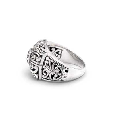 Silver Balinese ring with Blue Topaz Pave setting