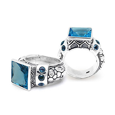 Silver ring with Blue quartz, crocodile motif