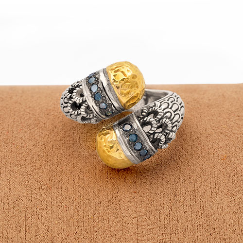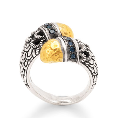 Gold & Silver ring, Black Sapphire pave, sisik naga collection