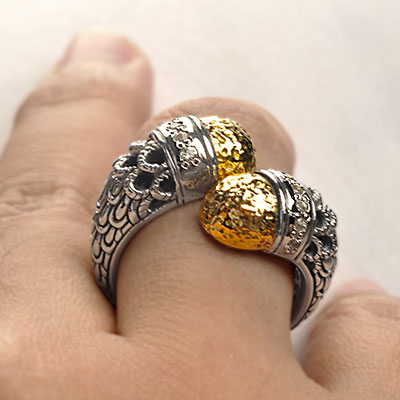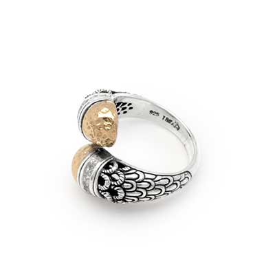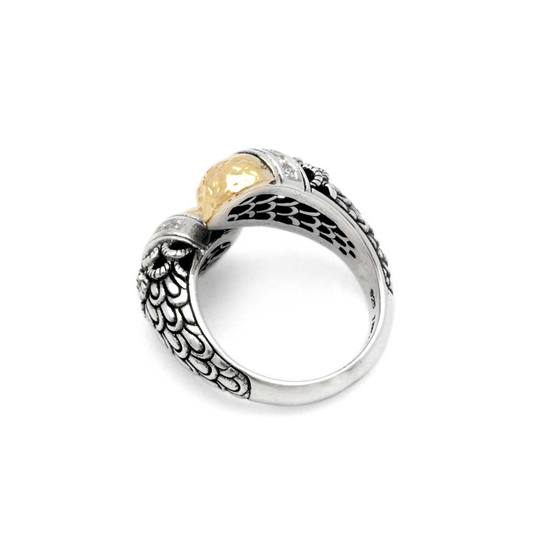 Gold & Silver ring, white topaz pave, sisik naga collection