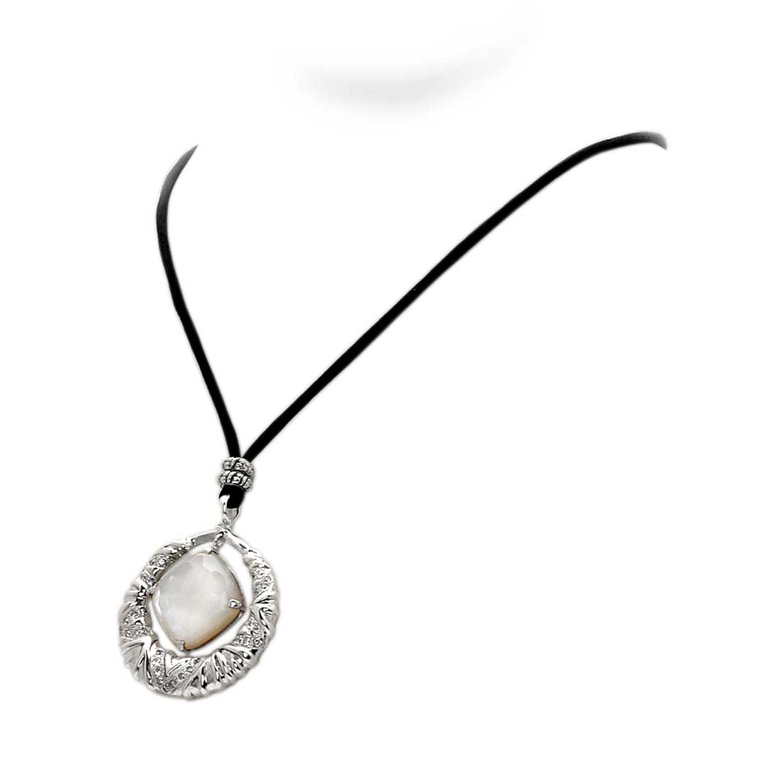 Silver necklace with cubic zirconia pave setting and cushion shell, zebra motif