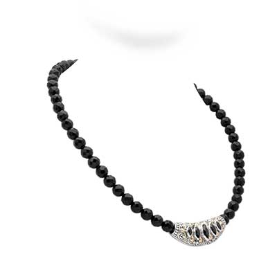 Gold & Silver necklace, Onyx stones with Onyx Bead