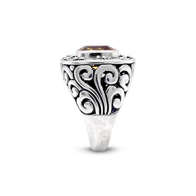 Silver ring with Bali motif and put with Citrine stone cushion shape size 10 mm