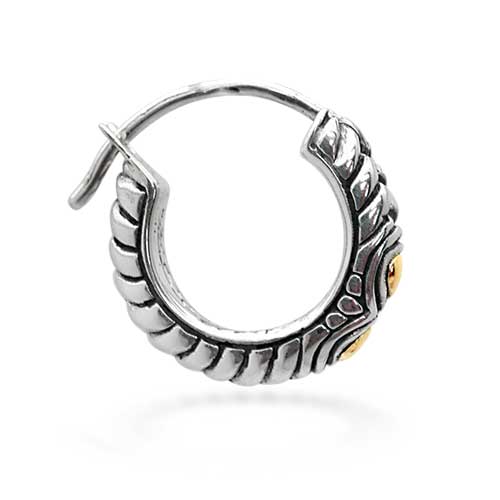 Gold & Silver hoop earring, bali motif