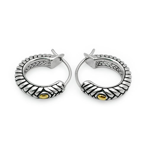 Gold & Silver hoop earring, bedeg motif