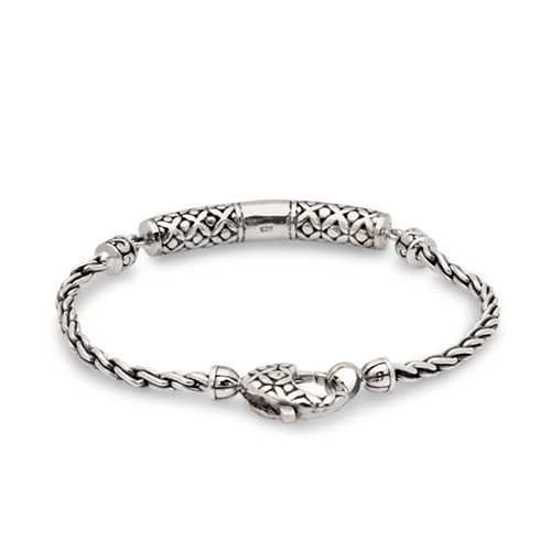 Silver bracelet, tripple chain 3 mm, soka flower motif, white topaz pave